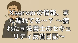 Xserverの情報、また漏れてる…? ~疲れた司法書士のセキュリティ反省日記~ Xserverの情報、また漏れてる…? ~疲れた司法書士のセキュリティ反省日記~ 「またやっちゃった」──机の上に置きっぱなしの付箋 司法書士という仕事柄、秘密保持には人一倍気をつけているつもりでした。ところが、ふと机を見ると、そこに堂々と... 2025.06.25