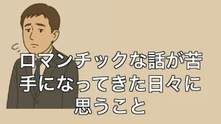 ロマンチックな話が苦手になってきた日々に思うこと ロマンチックな話が苦手になってきた日々に思うこと 気づけば恋愛ドラマにイライラしている自分がいる 最近、テレビで流れる恋愛ドラマにまったく共感できなくなった。昔はキュンとくるようなセリフに「いいなぁ」と素直に感じていた気がするのに、今では「... 2025.06.25
