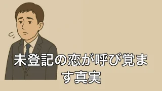 未登記の恋が呼び覚ます真実 未登記の恋が呼び覚ます真実 謎の依頼人が現れた朝 朝のコーヒーを淹れた直後だった。ドアが静かに開き、ベージュのコートを着た若い女性が入ってきた。 第一印象は、あまりにも静かすぎて存在感がなさすぎる、ということだった。 「登記のご相談で」と彼... 2025.08.08