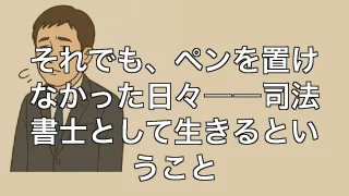 それでも、ペンを置けなかった日々――司法書士として生きるということ それでも、ペンを置けなかった日々――司法書士として生きるということ ペン1本で食っていくと決めたあの日 司法書士になると決めた日を、今でもはっきりと覚えています。別にドラマチックなきっかけがあったわけじゃない。どちらかといえば、他に選択肢が... 2025.06.23