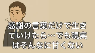 感謝の言葉だけで生きていけたら…でも現実はそんなに甘くない 感謝の言葉だけで生きていけたら…でも現実はそんなに甘くない 「ありがとう」だけで回る世界があるなら、それに賭けてみたかった 「ありがとう」と言われると、たしかに少しだけ報われた気がします。人に感謝されるというのは、自己肯定感を刺激される瞬間... 2025.06.23