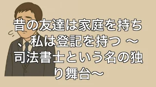 昔の友達は家庭を持ち、私は登記を持つ 〜司法書士という名の独り舞台〜 昔の友達は家庭を持ち、私は登記を持つ 〜司法書士という名の独り舞台〜 気づけば、ひとり。気づけば登記簿。 気づけば周りの友達はほとんど結婚して、子どももいる。それに気づいたのは、久々の同窓会だった。あれ? 俺ってば、まだ独りじゃないか。いや... 2025.06.23