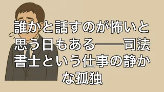 誰かと話すのが怖いと思う日もある──司法書士という仕事の静かな孤独 誰かと話すのが怖いと思う日もある──司法書士という仕事の静かな孤独 誰かと話すのが怖いと思う日もある──司法書士という仕事の静かな孤独 誰かと話すことすら重荷になる日がある この仕事を始めてから十数年。人と話すのも仕事のうちだと割り切ってき... 2025.06.23