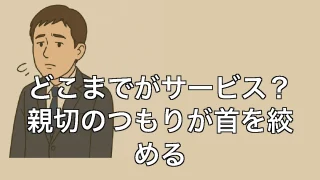 どこまでがサービス?親切のつもりが首を絞める どこまでがサービス?親切のつもりが首を絞める 「ちょっとだけお願い」が積もる日常 「これ、ついでに見ておいてくれます?」——この一言が、じわじわとこちらの生活を侵食してくる。独立開業して十数年、気づけば“無料で何でも屋”のようになっていた。... 2025.06.23