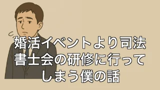 婚活イベントより司法書士会の研修に行ってしまう僕の話 婚活イベントより司法書士会の研修に行ってしまう僕の話 婚活の案内状と研修の通知が同じ日に届いた ある日のこと。封筒が2通届いていた。1通は市の婚活イベントの案内、もう1通は司法書士会の定例研修の案内状だった。日付を見ると、どちらも同じ土曜日... 2025.06.23