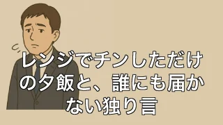 レンジでチンしただけの夕飯と、誰にも届かない独り言 レンジでチンしただけの夕飯と、誰にも届かない独り言 今日の晩ごはん、誰のため? 仕事が終わって事務所の電気を落とし、駐車場で車に乗り込む。エンジンをかけながら、「さて、今日の晩飯はどうするか…」と毎日のように独りごちる。でも正直、誰のために... 2025.06.23