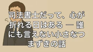 司法書士だって、心が折れる日はある ― 誰にも言えない小さなつまずきの話 司法書士だって、心が折れる日はある ― 誰にも言えない小さなつまずきの話 朝、玄関のドアが重たく感じる日 司法書士として独立して十数年。毎朝、玄関のドアノブを握るたびに、「今日も行くのか」と心の中でぼやく。誰にも見えないこの儀式が、実は一番... 2025.06.23