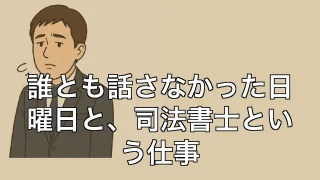 誰とも話さなかった日曜日と、司法書士という仕事 誰とも話さなかった日曜日と、司法書士という仕事 静かな日曜日、会話ゼロの現実 日曜の朝、目覚ましをかけずにゆっくり起きて、カーテンを開けたときの光がまぶしい。それだけで「休日だな」と感じる。でもそのあとが問題で、テレビをつけても、誰かと話す... 2025.06.23