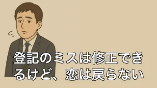 登記のミスは修正できるけど、恋は戻らない 登記のミスは修正できるけど、恋は戻らない 登記のミスは修正できるけど、恋は戻らない 恋愛よりも簡単な「相続登記」という現実 司法書士として日々相続登記をこなす中で、思うことがある。人間関係って、案外相続よりもずっとややこしい。相続登記ならば... 2025.06.23