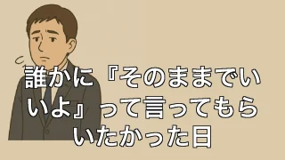 誰かに『そのままでいいよ』って言ってもらいたかった日 誰かに『そのままでいいよ』って言ってもらいたかった日 自分を肯定してくれる言葉に、飢えている 司法書士という職業を続けていると、誰にも見えない責任の重さに潰されそうになることがあります。登記ひとつのミスが、後に響くこともある。だからこそ慎重... 2025.06.23