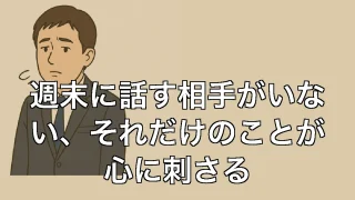 週末に話す相手がいない、それだけのことが心に刺さる 週末に話す相手がいない、それだけのことが心に刺さる 誰にも話しかけられない週末が、こんなに堪えるとは 平日はとにかく忙しい。朝から晩まで登記のチェック、相談の応対、そして「書類の山」。少なくとも誰かと会話しているし、意味のある会話をしている... 2025.06.23