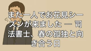 また一人でお花見シーズンが来ました ― 司法書士、春の孤独と向き合う日 また一人でお花見シーズンが来ました ― 司法書士、春の孤独と向き合う日 満開の桜と、空っぽの心 今年もまた、桜の季節がやってきた。いつも通る川沿いの並木道も、ピンク色に染まって華やかだ。でも、私の心は逆にどんよりしている。毎年、桜は変わらず... 2025.06.23