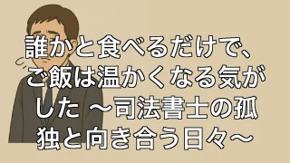 誰かと食べるだけで、ご飯は温かくなる気がした 〜司法書士の孤独と向き合う日々〜 誰かと食べるだけで、ご飯は温かくなる気がした 〜司法書士の孤独と向き合う日々〜 誰かと食べるだけで、ご飯は温かくなる気がした 〜司法書士の孤独と向き合う日々〜 一人で食べるご飯が、ふと虚しくなる夜 仕事が立て込んで帰りが遅くなった夜、ふと感... 2025.06.23