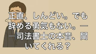 正直、しんどい。でも辞める勇気もない。――司法書士の本音、聞いてくれる? 正直、しんどい。でも辞める勇気もない。――司法書士の本音、聞いてくれる? 朝、目覚ましに起こされるたび「まだ生きてたか」と思う 朝が来るのが怖い、なんて思っていたのは昔の話。今は、朝になること自体に何の感情も湧かなくなった。ただ、目覚ましが... 2025.06.23