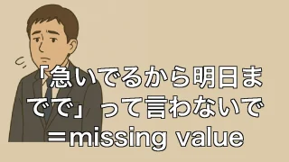 「急いでるから明日までで」って言わないで=missing value 「急いでるから明日までで」って言わないで=missing value 「急いでるから明日までで」の一言がもたらす重み 「急いでるから、明日まででお願いできますか?」——そんな一言が、こちらにどれほどの重みをもたらすか、ご存じだろうか。相手に... 2025.06.20