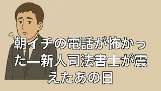 朝イチの電話が怖かった—新人司法書士が震えたあの日 朝イチの電話が怖かった—新人司法書士が震えたあの日 あの一本の電話で、すべてが揺らいだ 司法書士として事務所を構えたばかりの頃、毎朝かかってくる電話が、まるで死刑宣告のように感じていた。事務所の電話が鳴るたびに、心臓がバクバクして、手が震え... 2025.06.20