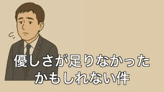 優しさが足りなかったかもしれない件 優しさが足りなかったかもしれない件 ふと振り返ったあの日の一言 最近、何気ないやり取りの中で、ふと昔の出来事を思い出した。あの時、事務員の彼女が少しだけ困った顔をしたのを、僕は見過ごしてしまったのかもしれない。いや、見ていたのに、見なかった... 2025.06.20