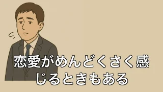 恋愛がめんどくさく感じるときもある 恋愛がめんどくさく感じるときもある 一人の気楽さに慣れてしまった日常 司法書士という仕事柄、日々の業務に追われ、帰宅するともう何もしたくなくなる。夕飯はコンビニの弁当、もしくは近所のラーメン屋。誰にも気を使わず、好きな時間に風呂に入り、眠く... 2025.06.20