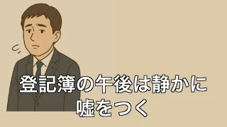 登記簿の午後は静かに嘘をつく 登記簿の午後は静かに嘘をつく 午後三時の来訪者 古びた登記簿と妙な依頼 古い茶封筒を胸に抱えた女性が事務所のドアを開けたのは、午後三時を少し回ったころだった。扇風機の羽音とカタカタ鳴る書類棚がやけにうるさく感じられるほど、彼女の登場は唐突だ... 2025.08.05